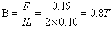 一根长为0.10m的直导线,垂直于某匀强磁场方向放置,当导线中通有2A的电流时,导线受到的安培力大小为0.16N,则: