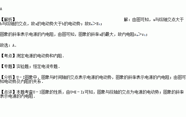 用电压表、电流表测定a、b两节干电池的电动势Ea、Eb和内电阻ra、rb时,画出的图线如图所示,则( )
