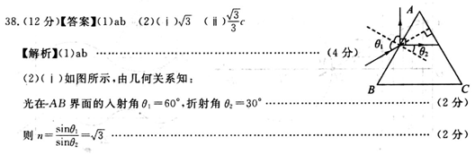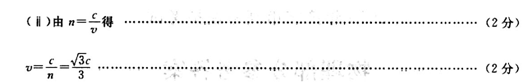 如图,一束激光垂直于AC面照射到等边玻璃三棱镜的AB面上。已知AB面的反射光线与折射光线的夹角为90°。光在真空中的传播速度为c。求: