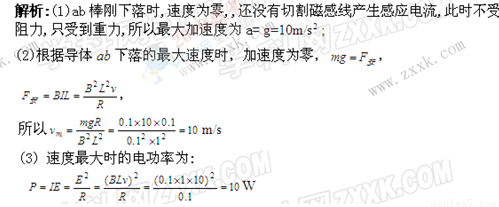 如图所示,有一磁感强度B=0.5T的水平匀强磁场,垂直匀强磁场放置一很长的金属框架,框架上有一导体ab保持与框架边垂直、由静止开始下滑.已知ab长10cm,质量为0.1kg,电阻为0.1Ω,框架电阻及摩擦不计,取g=10m/s2.求: