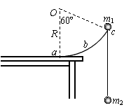 如图所示,圆心在O点、半径为R的圆弧轨道abc竖直固定在水平桌面上,Oc与Oa的夹角为60°,轨道最低点a与桌面相切. 一轻绳两端系着质量为m1和m2的小球(均可视为质点),挂在圆弧轨道边缘c的两边,开始时,m1位于c点,