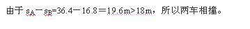 经检测汽车A的制动性能:以标准速度20m/s在平直公路上行驶时,制动后4s停下来.现A在平直公路上以20m/s的速度行驶,发现前方18m处有一货车B以6m/s的速度同向匀速行使,司机立即制动,能否发生撞车事故?
