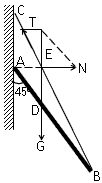 如图,重50N的均匀直棒AB,A端靠在光滑墙上,B端拴一轻绳,绳的另一端固定在墙上的C点,棒与竖直方向成450角而处于静止,设棒长为2m,