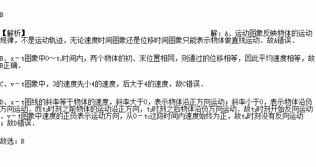 如图甲、乙所示的位移﹣时间(x﹣t)图象和速度﹣时间(v﹣t)中,给出了四条曲线1、2、3、4,代表四个不同物体的运动情况,则下列说法中错误的是( )