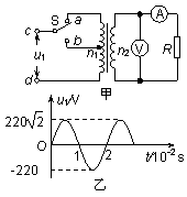 Èçͼ¼×Ëùʾ£¬ÀíÏë±äѹÆ÷Ô¡¢¸±ÏßȦµÄÔÑÊý±Èn1:n2=10:1£¬bÊÇÔÏßȦµÄÖÐÐijéÍ·£¬SΪµ¥µ¶Ë«ÖÀ¿ª¹Ø£¬¶¨Öµµç×èR=10 ¦¸¡£´Óijʱ¿Ì¿ªÊ¼ÔÚÔÏßȦc¡¢dÁ½¶Ë¼ÓÉÏÈçͼÒÒËùʾµÄ½»±äµçѹ£¬ÔòÏÂÁÐ˵·¨ÖÐÕýÈ·µÄÊÇ