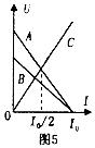 如图5所示,直线A为电源口的路端电压与电流的关系图象,直线B为电源b的路端电压与电流的关系图象,直线C为一个电阻R的两端电压与电流的关系图象,将这个电阻R分别接到a、b两电源上,那么
