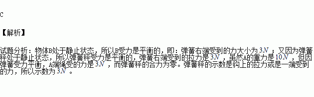 如图所示,物体A和B的重力分别为10N和3N,不计弹簧秤和细线的重力和一切摩擦,则弹簧秤所受的合力和弹簧秤的读数为