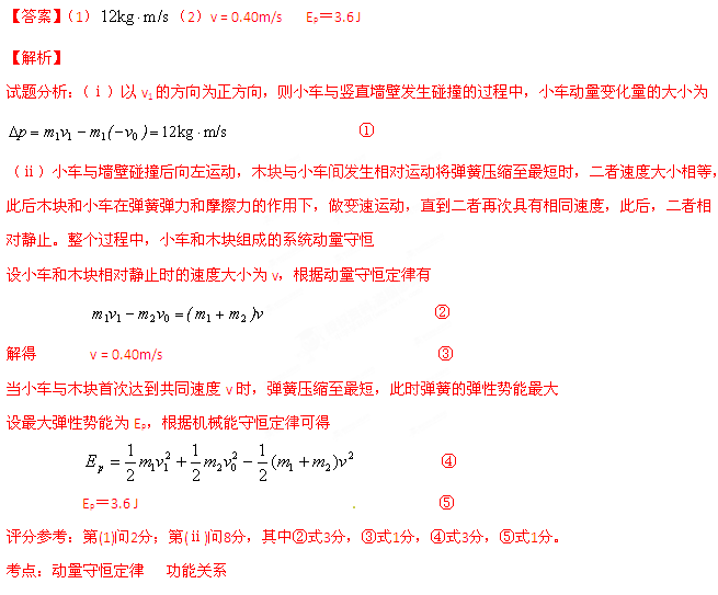 (ii)若弹簧始终处于弹性限度内,求小车撞墙后与木块相对静止时的速度大小和弹簧的最大弹性势能;