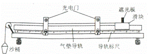 ÈçͼËùʾµÄ×°ÖÃÓÉÆøµæµ¼¹ì¡¢Á½¸ö¹âµçÃÅ¡¢»¬¿éºÍɳͰ×é³É£®¹âµçÃÅ¿ÉÒÔ²â³ö»¬¿éµÄÕÚ¹â°å·Ö±ðͨ¹ýÁ½¸ö¹âµçÃŵÄʱ¼ä¡÷t1ºÍ¡÷t2£¬Óα꿨³ß²â³öÕÚ¹â°åµÄ¿í¶Èd£¬µ¼¹ì±ê³ß¿ÉÒÔ²â³öÁ½¸ö¹âµçÃżäµÄ¾àÀëL£¬ÁíÓÃÌìÆ½²â³ö»¬¿é¡¢É³Í°£¨º¬É³£©µÄÖÊÁ¿·Ö±ðΪMºÍm£¬ÏÂÁÐ˵·¨ÕýÈ·µÄÊÇ£¨¡¡¡¡£©