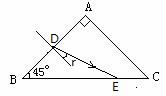 Ö±½ÇµÈÑü²£Á§ÈýÀâ¾µABCµÄ½ØÃæÈçͼËùʾ£¬¡ÏABC=¡ÏACB=45¡ã£¬Ò»Ìõµ¥É«¹âÏß´ÓÑüABÉϵÄDµãÉäÈëÈýÀâ¾µ£¬ÉäÈë²£Á§µÄÕÛÉä½Çr=30¡ã,ÕÛÉä¹âÏß´«²¥µ½BC±ßµÄEµã¡£ÒÑÖª¸Ã²£Á§µÄÕÛÉäÂÊn=