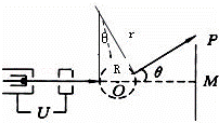 电视机的显像管中,电子束的偏转是用磁偏转技术实现的.电子束经过电压为U的加速电场后,进入一圆形匀强磁场区,如图所示.磁场方向垂直于圆面.磁场区的圆心为O,半径为r.当不加磁场时,电子束将通过O点打到屏幕的中心M点,为了让电子束射到屏幕边缘的P点,需要加磁场,使电子束偏转一已知角度θ,此时磁场的磁感应强度B为多少?