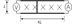 如图所示,在水平面上有两条长度均为4L、间距为L的平行长直轨道,处于竖直向下的匀强磁场中,磁感应强度为B.横置于轨道上长为L的滑杆向右运动,轨道与滑杆单位长度的电阻均为