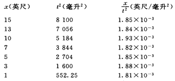 1961年,美国《科学》杂志刊登了根据伽利略当年描述的实验装置所进行的一项重复性斜面实验.该实验的倾角为3.73°,使用水钟测量时间,其结果见下表: