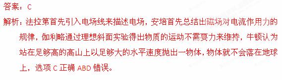 D.牛顿认为站在足够高的高山上无论以多大的水平速度抛出一物体,物体都会落在地球上
