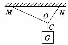 如图所示,细绳MO与NO所能承受的最大拉力相同,长度MO>NO,则在不断增加重物G重力的过程中(绳OC不会断)( )