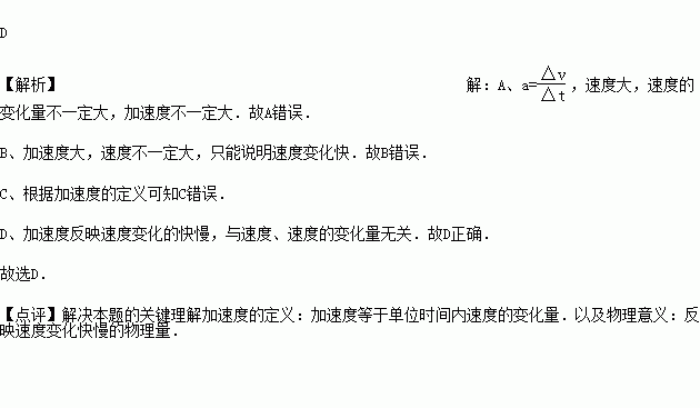 D.加速度反映速度变化的快慢,与速度、速度的变化量无关