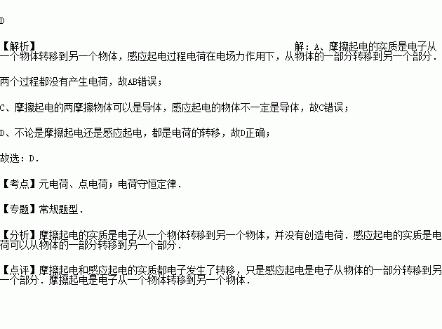 A.摩擦起电是因为电荷的转移,感应起电是因为产生电荷
