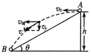 如图所示,一个小球在斜面顶端A水平抛出,落地时的位置刚好在B点,已知斜面高为h,倾角为θ,问抛出后多长时间,小球离斜面距离最大?