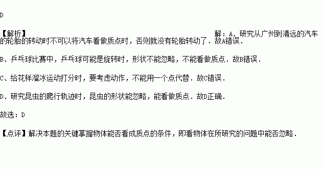 D.研究昆虫的爬行轨迹时可以将昆虫看做质点