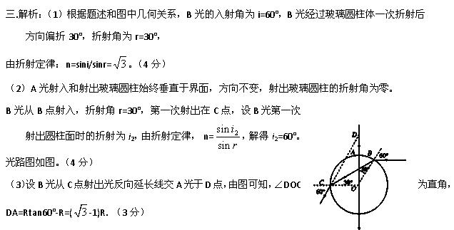 £¨3£©ÇóÁ½Ìõ¹âÏß¾Ô²ÖùÌåºóµÚÒ»´ÎÉä³öµÄ¹âÏߵĽ»µã£¨»òÑÓ³¤ÏߵĽ»µã£©ÓëAµãµÄ¾àÀë¡£
