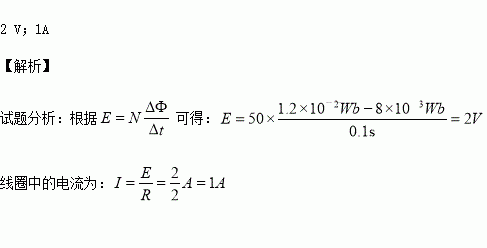一闭合线圈有50匝,总电阻R=2.0Ω,穿过它的磁通量在0.1s内由8×10-3Wb均匀增加到1.2×10-2Wb,则线圈中的感应电动势E= ,线圈中的电流强度I= 。