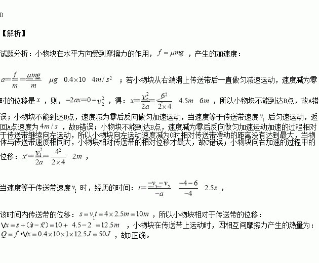 D.小物块在传送带上运动时,因相互间摩擦力产生的热量为50J