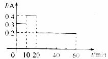 一台电风扇的额定电压为交流220V。在其正常工作过程中,用交流电流表测得某一段时间内的工作电流I随时间t的变化如图所示。这段时间内电风扇的用电量为