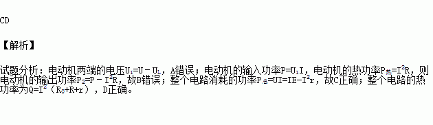 B.电动机的输出功率为IE-I2R