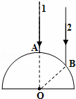 半径为R的玻璃半圆柱体,横截面如图所示,圆心为O,两条平行单色红光沿截面射向圆柱面,方向与底面垂直,光线1的入射点A为圆柱面的顶点,光线2的入射点为B,∠AOB=60°,已知该玻璃对红光的折射率n=