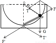 ÈçͼËùʾ£¬ÖÊÁ¿ÎªM¡¢°ë¾¶ÎªR¡¢Äڱڹ⻬µÄ°ëÇòÐÎÈÝÆ÷¾²·ÅÔÚ´Ö²ÚˮƽµØÃæÉÏ£¬OΪÇòÐÄ£®ÓÐÒ»¾¢¶ÈϵÊýΪKµÄÇᵯ»ÉÒ»¶Ë¹Ì¶¨ÔÚ°ëÇòµ×²¿