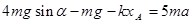 ⑵物体A刚刚离开地面时,以B为研究对象,物体B受到重力mg、弹簧的弹力kxA、细线的拉力T三个力的作用,设物体B的加速度为a,根据牛顿第二定律,对B有: