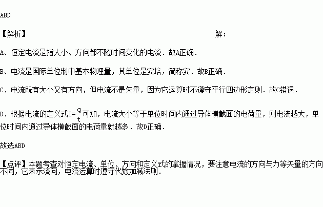 A.我们把大小、方向都不随时间变化的电流称为恒定电流