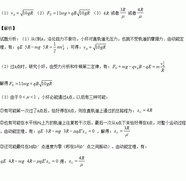 (2)小环在第一次通过轨道最高点A时受到轨道的压力