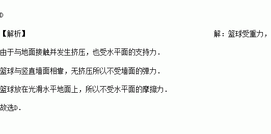 篮球放在光滑水平地面上与竖直墙面相靠,且处于静止状态,则篮球的受力情况是( )