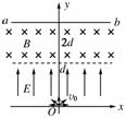 ,其中q与m分别为α粒子的电荷量和质量;在d<y<2d的区域内分布有垂直于xOy平面的匀强磁场.ab为一块很大的平面感光板,放置于y=2d处,如图所示.观察发现此时恰无粒子打到ab板上.(不考虑α粒子的重力)