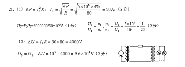 sin314tV,输出功率5000kW,远距离输电线的电阻为80Ω,输电线上功率损耗要求不超过总功率的4%,则