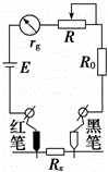 如图为多用电表欧姆挡的原理示意图,其中电流表的满偏电流为300μA,内阻rg=100Ω,调零电阻最大阻值R=50kΩ,串联的固定电阻R0=50Ω,电池电动势E=1.5V,用它测量电阻Rx,能较准确测量的阻值范围是( )