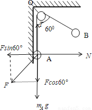 kg,B球带正电,现将绝缘细线通过O点的光滑定滑轮,将两球悬挂起来,B球处在水平向右的电场强度为E=2×104N/C的匀强电场中,两球平衡时,OA线竖直,OB线偏离竖直方向