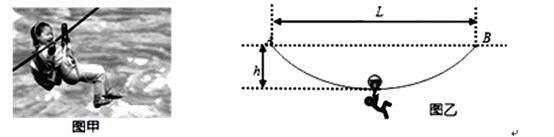 在云南省某些地方到现在还要依靠滑铁索过江(如图甲),若把这滑铁索过江简化成图乙的模型,铁索的两个固定点A、B在同一水平面内,AB间的距离为L=80m,绳索的最低点离AB的垂直距离为h=8m,若把绳索看做是圆弧,已知一质量m=52kg的人借助滑轮(滑轮质量不计)滑到最低点的速度为10m/s(取g=10m/s2),那么 ( )