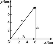 一条小汽艇在宽广的湖面上向东行驶了6.0 km,接着向北行驶了8.0 km,则汽艇的位移大小是多少?方向如何?