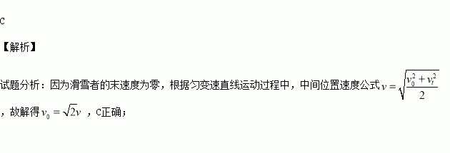 滑雪者以某一初速度冲上斜面做匀减速直线运动,到达斜面顶端时的速度为零,已知滑雪者通过斜面中点时的速度为v,则滑雪者初速度的大小为( )