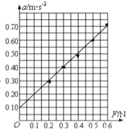 (4)某同学测得小车的加速度a和拉力F的数据如下表所示:(小车质量保持不变)请根据表中的数据在坐标图上作出a-F图象;图象不过坐标原点的原因可能是 。