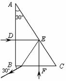 ②若光线从BC面的F点垂直BC面射入透明体,经AC面E点反射后从AB面射出透明体,试画出经E点后的光路图,并标明出射光线与AB面所成夹角的角度(不用列式计算)。