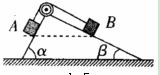 ÈçͼËùʾ£¬A¡¢BÁ½Îï¿éÓÃÒ»¸ùÇáÉþ¿ç¹ý¶¨»¬ÂÖÏàÁ¬(²»¼Æ»¬ÂÖµÄÖÊÁ¿ºÍĦ²Á)£¬¾²Ö¹ÓÚÐ±ÃæÌåÁ½¸ö¹â»¬Ð±ÃæÉϵÄÏàͬ¸ß¶È´¦£¬Á½Ð±ÃæµÄÇã½Ç·Ö±ðΪ¦Á=60¡ãºÍ¦Â=30¡ã¡£ÏÖ¼ô¶ÏÇáÉþ£¬A¡¢BÑØÐ±ÃæÏ»¬ÇÒÐ±ÃæÌå±£³Ö¾²Ö¹£¬Ôò´Ó¼ô¶ÏÇáÉþµ½Á½Îï¿é×ŵصĹý³ÌÖУ¨ £©