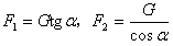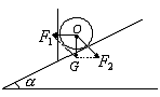 解:球受到向下的重力作用,这个重力总是欲使球向下运动,但是由于挡板和斜面的支持,球才保持静止状态,因此,球的重力产生两个作用效果,如图所示,两个分力:①使球垂直压紧档板的力F1;②使球垂直压紧斜面的力F2,由几何知识可得