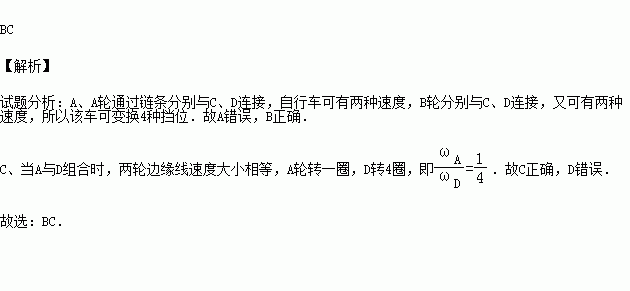 D.当A轮与D轮组合时,两轮角速度之比ωA:ωD=4:1