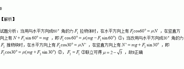 拉物体时,物体做匀速直线运动,当改用与水平方向成30°角的力