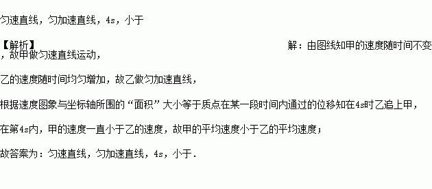 水平地面上两个质点甲和乙,同时由同一地点沿同一方向作直线运动,它们的v﹣t图线如图所示.甲做 运动,乙做 运动,在 时乙追上甲,在第4s内,甲的平均速度 (大于、等于或小于)乙的平均速度.