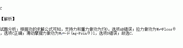 C.拉力做功为Flcosθ D.滑动摩擦力做功为-μmgl
