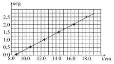 为了测量某一弹簧的劲度系数,将该弹簧竖直悬挂起来,在自由端挂上不同质量的钩码,实验测出了钩码质量m与弹簧长度l的相应数据,其对应点已在图上标出。(g=9.8m/s2)